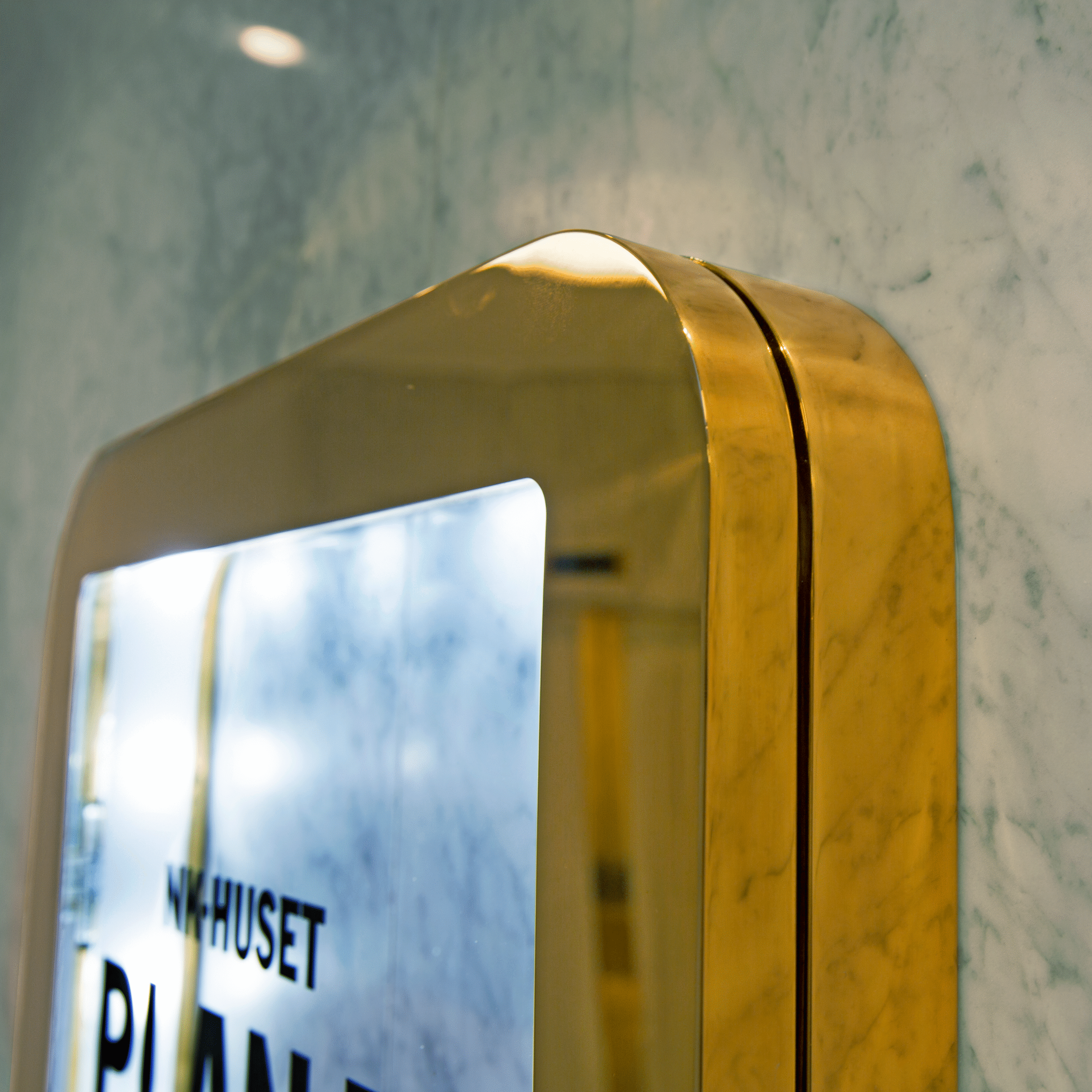 Fördelar med NK-Husets infoskåp: ✅ Genombruten konstruktion utan baksida för öppen och modern look ✅ Blank guldtitanlegerad rostfri ram för exklusiv känsla ✅ Inifrån belyst med LED som ger jämn och elegant ljusspridning ✅ Klarglasdörr med vinyldekor på baksidan för skydd och stilren design ✅ Perfekt för fastighetsregister och hyresgästslistor i publika miljöer
